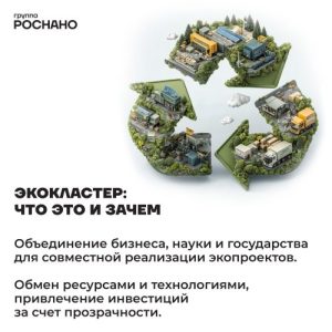 Экокластер — часть масштабного экотехнологического блока Группы РОСНАНО по разработке и внедрению технологий для переработки отходов и вовлечению полезных компонентов в хозяйственный оборот.