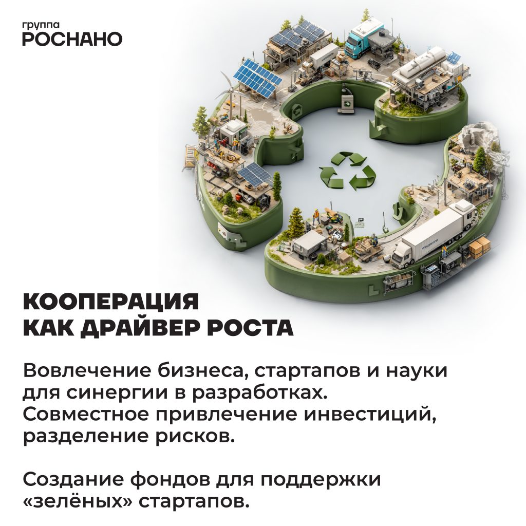 🔹 Ускоряем инновации: кооперация между крупными компаниями, МСП, стартапами и наукой позволяет быстрее внедрять новые «природоподобные» технологии